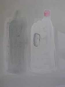2020een impressie van een blauwe fles met de witte titaanverfpot.